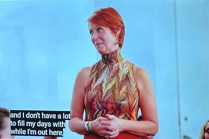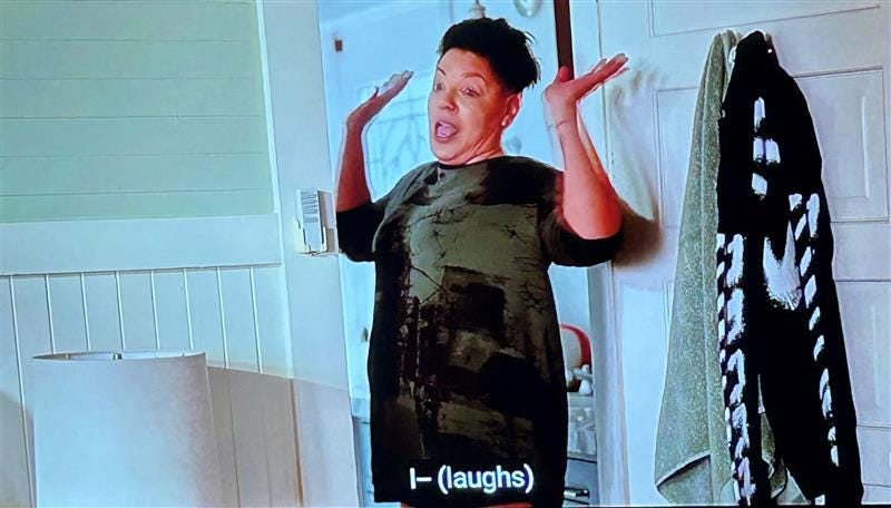 Now, I didn’t get any picture of Miranda’s beach day or Che eating with Tony Danza5 but both things were a mess. The outfit they tried to put Che in was so ugly and that screenwriter needed to BFFR. Now, Miranda and this damn phone. All I know that she better have put all that seaweed and kelp back in them bins when she was done looking! She has always cared about her phone too much, but this was understandably stressful. It’s not bad that she didn’t know Che’s phone number. I don’t know any of my friend’s phone numbers by heart! Also, the woman who invited her to that beach day seemed shady idk. Maybe she stole her phone!