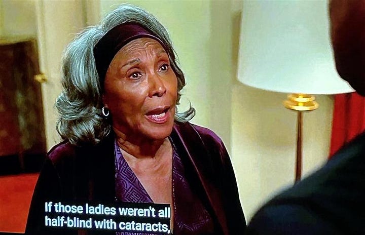 LTW and this wig!!!!! Chile, I live. The bangs and the shape are taking me out. Now LTW’s entire family plot line was really them letting y’all into black people’s business. This really showed me that they have some black people in that writer’s room. The fact that their daughter (and not their sons2) had to change her hair to be more presentable for their grandmother is so messed up. I do feel like they tried to get Lynn Witfield and they couldn’t no shade to this lady. It is clear that the grandmother truly believes in the “Respectable Negro” tactic when dealing with white people. That being said she did eat LTW up with the Lion King line because that was hilarious!!!! She did look like an extra of that play akdnkandkja. I am going to need her husband3 to stick up for LTW in front of his mama though.