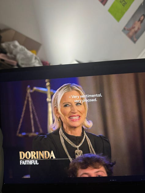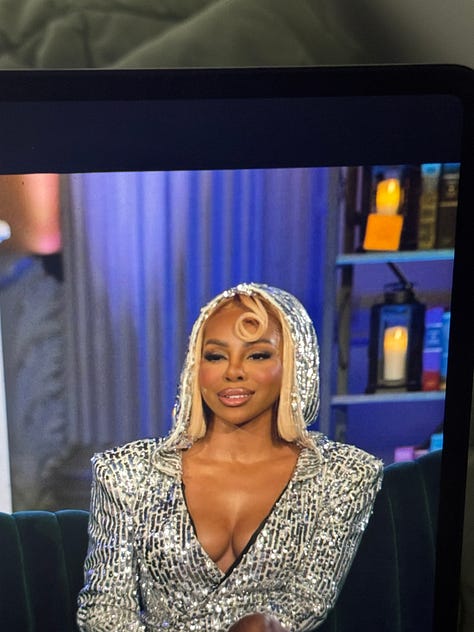 Dorinda is also for the Traitors reunion. I don’t know much about Dorinda because I don’t watch RHONY, but from what I know, she was very understated on traitors.