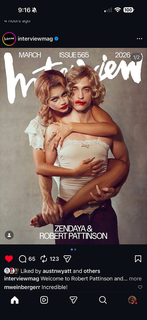 Zendaya and Robert Pattinson for the cover of Interview. Rob is ROCKING that bob, I live